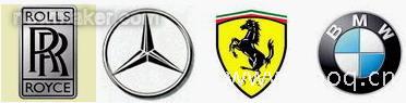 图2.1 劳斯莱斯的标志/图2.2 奔驰的标志/图2.3 法拉利的标志/图 2.4 宝马的标志