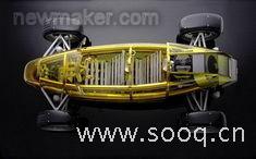 在2007年汽车博览会上展出的RINSPEED MANSORY eXasis的车身蒙皮是用经过多次改良的聚碳酸酯制成的,这种材料具有很多优点,除去能够在保证折射率的情况下革除100%的紫外线之外,它制成的车身部件,在强度及抗冲击能力方面并不比一般的金属部件差。当然,最重要的一点是它的轻量化,同等体积情况下,该材料的重量仅为钢铁部件的15%左右。