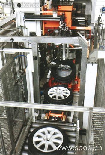 输送带连接到仓储输送系统上。输送进给容量限制在大约100个/h车轮,这也是来自车轮生产单元最大的车轮数量。