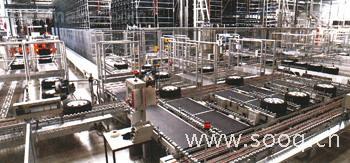输送系统连接装配设备并完成到高架仓库的输送。在质量检测完成后,经过装配和平衡之后的车轮被转移到预留存储区的输送系统上,然后在自动化仓储系统中进行确认,并被分配到一个存储位置中。