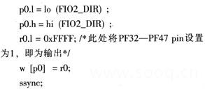 这是一个16位寄存器,若将其中的某一位设置为1,那么相应的PF引脚就可作为输出;反之,则为输入。其相关设置代码如下: