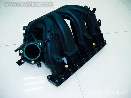 进气歧管是发动机的核心部件,它是影响发动机动力性和油耗的关键因素之一。其功能是为发动机各缸提供充足而均匀的混合气,同时为主要的传感器和执行器提供结构支撑。一般的进气歧管采用铸铁和铝合金材料,20世纪80年代以来,相继开发成功了用尼龙通过熔芯法和磨擦焊接法来制造进气歧管。用尼龙制造空气进气歧管代表了塑料代替金属的真正突破。由于设计的灵活性,使产品装配更方便,再配以功能集成,可使主机厂和一级供应商在生产效益和成本方面获益。与铝合金比较,塑料进气歧管可以减轻40%左右的重量,生产成本降低20%~30%,同时通过部件集成还可以进一步减低成本。另外,由于进气歧管的内壁光滑,从而有利于提高发动机的动力性和燃油的经济性。进气歧管目前主要的生产方法是采用振动摩擦焊接技术,也有采用熔芯法等生产一些复杂的、小批量的产品。通常尼龙进气歧管采用的材料是30%~35%玻璃纤维增强的尼龙6或尼龙66 , 如罗地亚公司的TECHNYL C218V30Black(PA6GF30)和TECHNYL A218V30Black(PA66GF30)都广泛用于制造进气歧管。需要特别指出的是,使用罗地亚公司的专利——“尼龙之星”制造的TECHNYL STAR S218V35Black31N,由于具有极高的流动性和突出的耐热性能,更是成为制造进气歧管的首选。