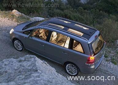 其中,“Zafira”采用了以聚氨酯基体材料夹持玻璃、再层叠粘贴聚碳酸酯薄膜式结构的全景式车顶。这种全景式车顶采用模块化制造,内装部分的储物箱等采用了一体化成形。
