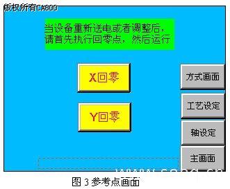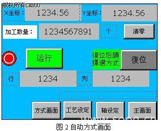 (1)触摸屏画面设计:在触摸屏画面里,此次采取标准CNC的理念,有三种控制方