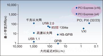 非常适用于测试和测量设备的PCI Express是从PCI总线发展而来的一种总线。与PCI相比,PCI Express的带宽有了很大的提高,每个方向的信道速率可以达到4GB/s,同时在软件上仍兼容于PCI。USB接口,由于其使用范围宽和其即插即用的方便特性,目前也深受大众欢迎。LAN作为一种总线特别适用于分布式应用场合。最后还有GPIB总线,也是一种非常成功的测量总线,因为它具有相对较低的延迟时间,因而适用于很多类型的仪器。