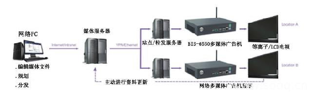 随着国内商业与消费环境的日益发达,广告需求也越来越大,数字化、网络化、信息化的多媒体广告机也成了广告传媒市场的一大亮点。但是,目前的广告机大都是单机,要更换广告片必须更换广告机的CF卡或是DVD光盘,不仅造成大量人力浪费而且难以快速将多媒体信息准时、精确投放至所需的特定受众群体。网络化的多媒体广告机则由于领先的技术优势开始在在酒店、超市、楼宇等高收入领域广告投放市场中备受青睐。