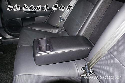 后排座椅带中央扶手,打开后可放置小件物品以及水杯。隐藏式设计相当方便。