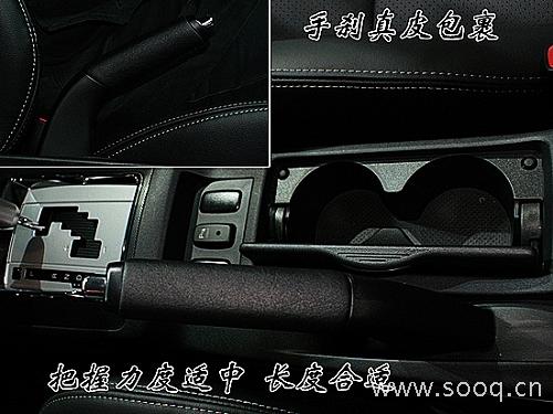 同方向盘材质相同的手刹部分,样式传统但实用。长度适中拉起时轻松顺手,行程较短,使用反应灵敏。