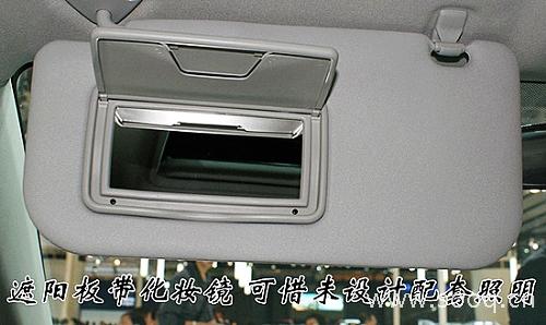 前排遮阳板均有设计化妆镜,不过开启后没有自带照明,需要配合车内照明灯或者阅读灯使用。