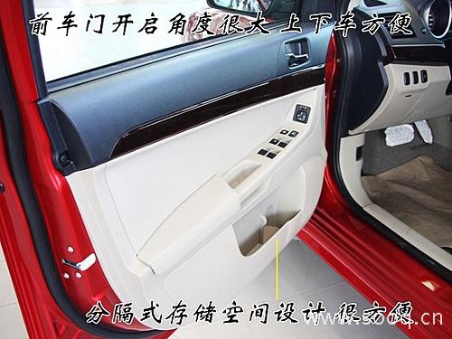 虽然车身不大,但Lancer EX的的前车门开启角度很大,上下车方便舒适,门内侧还提供了较大的存储空间,为车内乘员的物品放置提供方便。
