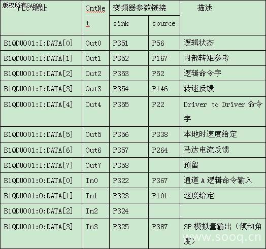 表2 1#倾动变频器参数链接及与PLC的对应关系