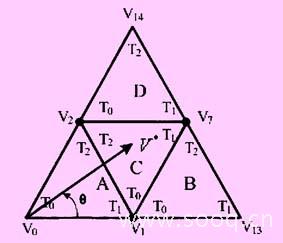 三电平逆变器共有27个基本矢量可供选择,整个空间电压矢量分布图可以划分为6个扇区共24个三角形区域(见图1)。 参考电压矢量所处的扇区位置可根据参考电压矢量的角度来确定。如图2所示,将任意一个60°扇区划分a、b、c、d四个小三角形。当某一长度的参考矢量v*在某一扇区内旋转时有可能会跨越不同的三角形区域,据此将矢量工作模式划分为a模式、ac模式、bcd模式和bd四种。在不同区域的临界处存在着矢量切换角,如图2所示,θ1、θ2可通过简单的三角运算获得,这样通过矢量切换角θ1、θ2就可以清晰的确定参考矢量所在的三角形区域,根据ntv(the nearest triangle vectors)原则,用构成该三角形的三个固有矢量来合成该参考矢量,这样各个矢量的作用时间便可以获得,在不同的三角形区域内各个矢量的作用时间如图3所示。