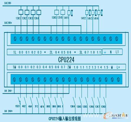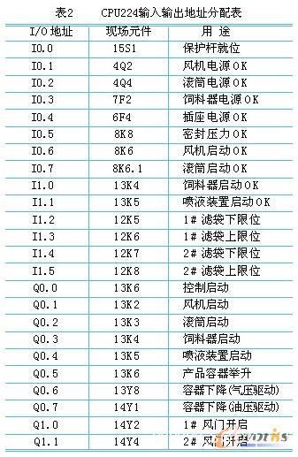 控制系统选用西门子S7-200系列PLC,选用了中央处理单元模块CPU224、数字量扩展模块EM223、模拟量输入模块EM231、模拟量输出模EM232、模拟量输入输出模块EM235。其中的中央处理单元模块CPU224外部接线图如图3所示、输入输出地址分配如表2所示: