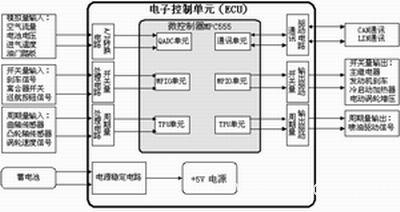 以MPC555为核心控制单元,辅以相应的输入信号处理、输出控制和通讯单元设计的发动机电控系统硬件电路结构框图,如图2所示。