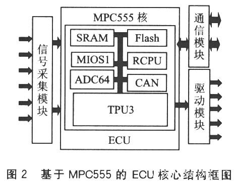 针对当前ECU开发技术的发展,研制过程中,ECU硬件采用.Motorola高性能32位Power PC微控制器——MPC555。MPC555主要有以下功能模块;