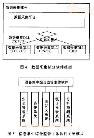 为了实现综合监管的目标,利用代理层将原有系统(应用层)在数据接口上达到统一,这样代理层加上应用层组成的新的网络将是管理监控层所需要的“统一”网络,在概念上可以想象成一个虚拟网络。管理监控层通过由代理层组建的综合数据库,对大的方面(比如现在的告警系统,以后通过统一其他系统的数据接口就可以实现其他方面的监控)进行全局性调配与管理,细节留给原有系统的网管系统或者管理系统处理。各系统通过代理层的代理软件(数据采集软件)的映射,完成数据接口的统一。