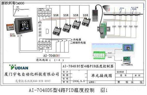 控制四路电加热管的固态继电器控制器AI-7048D5模块。附图在塑料挤出机四温区加热控制的设计中,需要控制器的显示与控制动力部分要分开安装。控制箱150mm厚,AI-2057触摸控制屏兼无纸记录仪安装在控制柜上,AI-7048D5型4路温度控制器安装在控制箱内导轨安装,4个固态继电器嵌入在动力箱壁同时起到散热的功效。触发4路固态继电器来控制电加热管,温度曲线在触摸屏上显示。当控制模块脱离显示屏时,可采用AI-7048D5模块专用的显示E8手持器配合使用。 AI-7048D5模块应用 3.1仪表功能