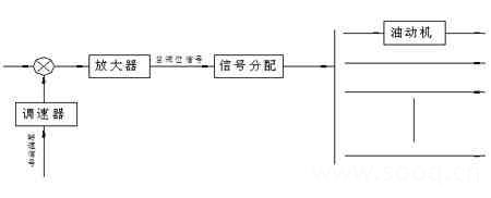 液压调速系统控制器,由调速器、同步器、放大器、信号分配器等环节组成,控制策略为转速有差调节。由调速器和同步器给出转速偏差信号,经过液压放大器放大,形成总阀位信号,经过信号分配器控制各执行器,即油动机,由油动机驱动和定位汽轮机的调节机构,即调节阀。单机运行时,同步器用来调整汽轮机转速;并网后,同步器用来调整分配给本机的负荷。