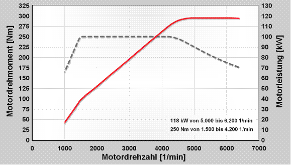 图2:1,8TFSI涡轮增压汽油直喷发动机功率扭矩图