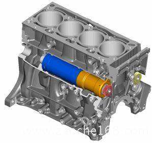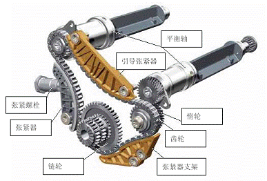 在发动机缸体内安放两个平衡轴,利用两根平衡轴自身的旋转抵消发动机的震动,增强发动机动平衡状态特性,从而降低噪音和减小油底壳内出来的机油泡沫。