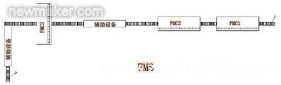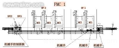 每个FMC中都由几道工序组成,每道工序分别由多台相同型号的加工中心组成。每个FMC前面是上料辊道,后面是下料辊道及检测站。各个FMC之间也是相应的辊道,可以起到工件暂存作用。