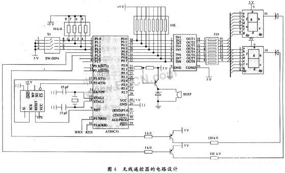 无线遥控功能采用SRWF-1模块实现,通过89C51进行控制,将C51收到的信息通过串口发给SRWF-1发射模块,SRWF-1接收模块将接收到的信息通过串口传给LPC2210。