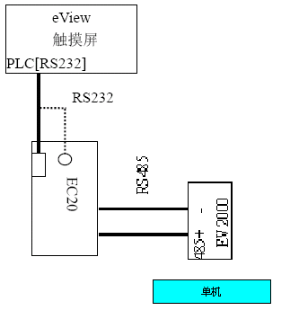 1、在本自动控制系统中,变频器我们采用了美国艾默生,同时,为方便用户进行实时监控设备运行状态以及便于维修,我们采用了人机界面触摸屏,控制器采用了艾默生EC20,由于它具有两个通讯端口,并且可任意选择通讯协议,组网方式如下: