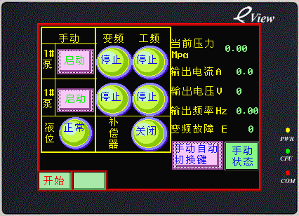 3、通过此种组网方式,用户对于压力设定、输出频率、辅泵频率、PID数值、切换时间、 延时时间、超压设定、压力反馈等数十种参数可在触摸屏上显示、 设置、修改,方便操作。对水泵工作状态、变频器工作状态 和系统水位等多个参数,实现了即时跟踪。满足远距离监测、监控及控制功能。