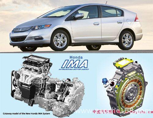 图7:辅助混合动力指车辆依然以发动机为主要动力来源,大扭矩助动电机作为辅助动力来源与主要动力相联,本田IMA辅助混合动力系统是这一技术的代表。