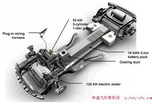 图9:插电式混合动力车完全由电动机驱动,并且比全混合电力汽车有较长纯电动行驶里程(图库 论坛),当电池处于较低电量时,发动机将启动发电为车辆提供动力。