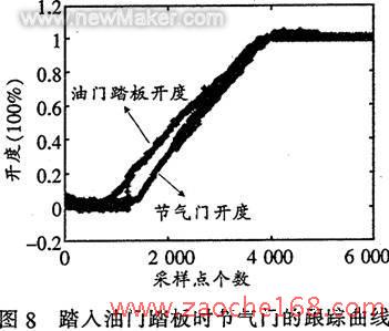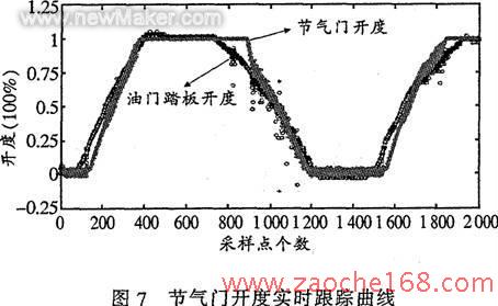 节气门ECU对油门踏板开度和节气门开度分别采集了最大值和最小值,计算出各自的相对值,这样在一定程度上就保证了跟踪控制的精确性。