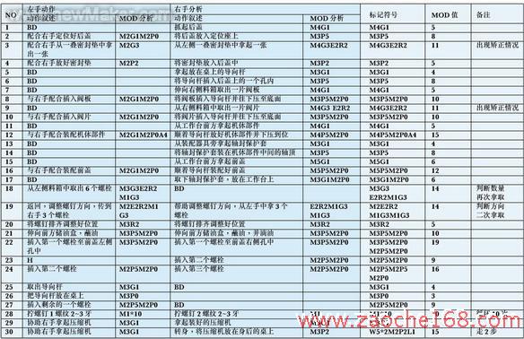 将每个环节的时间与生产能力要求相比较,达不到要求的即是瓶颈环节,也便是改进点。对瓶颈环节进行分析改进,主要采用了MOD法(模特法)。