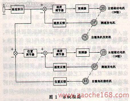 此系统是一个典型的位置随动系统,其中2#链是主链,1#、3#、7#链是从链,从链跟随主链运行,由速度反馈及位置反馈构成一个速度内环位置外环的双闭环控制系统。