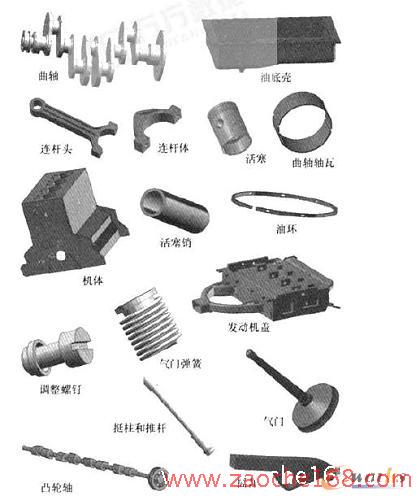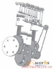 图2 曲柄连杆及配气机构 图 3 发动机总体机构的装配