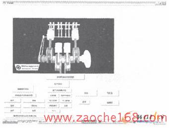 在用户化界面中,使用者只需在确定安装目录与程序一致的前提下,打开Forml文件,便会呈现图5所示的界面,这时用户只需点击界面中任何一个按钮,便可以从上面的窗口中看到所要查看的对象,其中包括发动机各零/部件及其装配图,也可以清晰地看到曲柄连杆机构和配气机构工作原理。