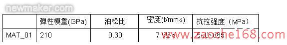 建立有限元模型时,采用 MAT1材料模型进行材料建模,材料相关参数如表所示。