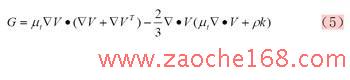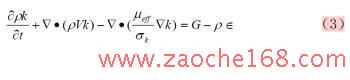 其中C∈1, C∈2, σκ, σ∈为常数,其取值一般为:C∈1=1.44,C∈2=1.92,σκ=1.0,σ∈=1.3。剪切生成项G的取值一般按下式得出