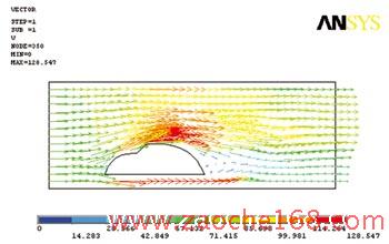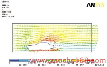 由ANSYS分析计算得知:在汽车头部气流开始分流,而汽车外形的变化使流速开始加快。在汽车的顶部和底部产生高速区,且在车顶部分产生最高流速,然后开始逐渐回落。汽车尾流中有纵向的涡流产生,随尾流的发展,涡流由强到弱,涡心降低(逐渐接近轨面),涡核向外移动。通过比较,第三种车型优于其他两种车型,且在低速和高速时都有较好的空气动力性能。故在汽车外形发展设计研究时,应尽量将汽车外形设计成流线型,外形曲面曲率不应出现突变或变化过大,避免产生流动分离。