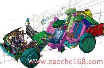 油泥模型冻结后,就全面进入到了产品设计阶段。产品设计工程是汽车自主创新开发中最为重要的一步,它贯穿整个汽车开发的全过程,包括整车总体布置、汽车工程分析、产品结构分析、具体总成与零部件的详细设计以及它们之间的相关协调工作。这一阶段耗时最长,如果撇开后期的设计改进时间不算,一般需要1年左右的时间。