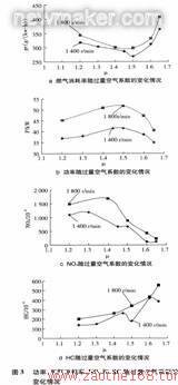 3.从试验结果中可以看出,最佳的过量空气系数在约1.5。