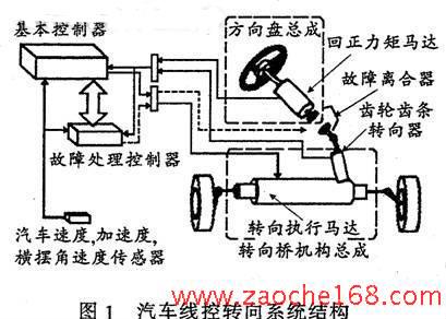 汽车转向系统是决定汽车主动安全性的关键总成,传统汽车转向系统是机械系统,汽车的转向运动是由驾驶员操纵转向盘,通过转向器和一系列的杆件传递到转向车轮而实现的。汽车线控转向系统取消了转向盘与转向轮之间的机械连接.完全由电能实现转向,摆脱了传统转向系统的各种限制.不但可以自由设计汽车转向的力传递特性,而且可以设计汽车转向的角传递特性,给汽车转向特性的设计带来无限的空间。是汽车转向系统的重大革新。