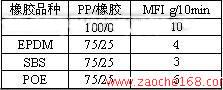 表一:橡胶对聚丙烯流动性的影响