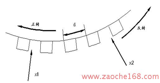 假设任意两齿之间距离为d,只要x1 和x2 之间距离不等于n/2.d(n 为任意整数),则转盘转动时,x1、x2 两处的输出波形就将如图3 所示。