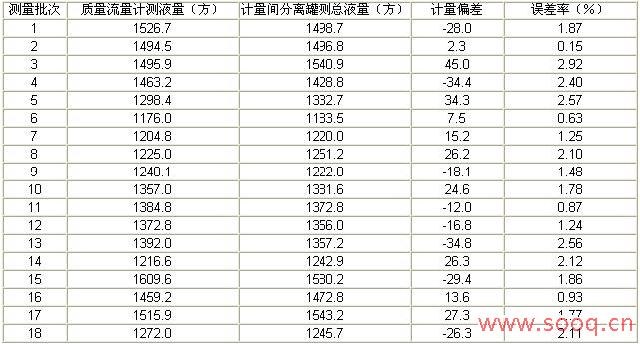 表1 含水原油质量流量计和计量间分离罐计量对比