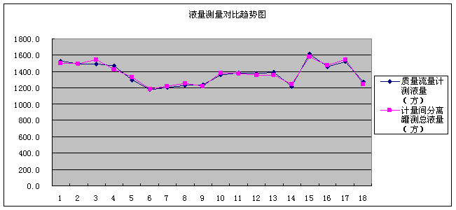 表1反应出了质量流量计与各计量站分离器的液量计量结果对比,从该对比结果可以看出质量流量计与分离器液量计量结果之间的误差都在3%之内,小于油田企业原油计量的误差标准。并且在图3中也可以明显地看出计量结果趋势的一致性。