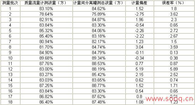 在转油站中的待测介质较为稳定,所以质量流量计在外输交接计量的使用中比较稳定,问题很少。一般表现为含水测量不准,密度误差大,但是经过我们与厂家的共同努力和大量现场实测数据的分析表明:含水测量的误差主要是由我们输入的标准状况下油和水的密度值不能准确反映真实状况下的纯油和矿化水的真实密度造成,而密度误差是因为安装不符合规则引起的。