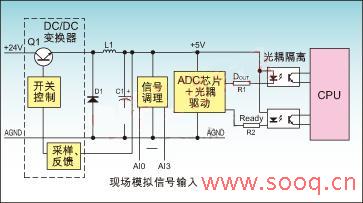 图1:电源 target=_blank>开关电源在模拟量采集系统中的典型应用图