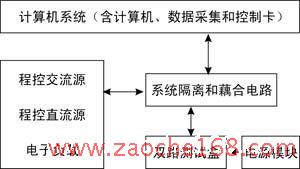 根据系统的要求,系统由计算机主机、数据采集和控制卡、程控交流源、程控直流源、4路电子负载、电源测试盒和一些附属电路组成(图1)。