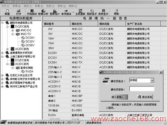系统可以创建电源模块数据库,可以存储模块数据,可以进行模块删除,并可以对测试数据进行处理、修正、统计和显示,对测试数据报表进行整理和打印。系统还具有双通道测试夹具以提高测试速度。