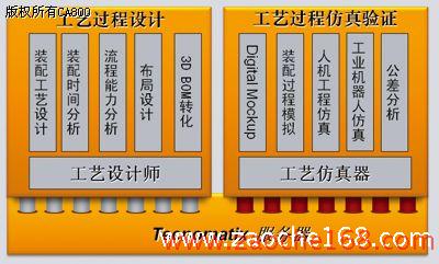 整个Tecnomatix软件解决方案包括两个主要部分:Process Designer(工艺设计师)和Process Simulate(工艺模拟仿真)。